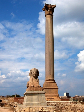 Eine 25 Meter hohe Säule aus roten Granit, die zu Ehren des Kaisers Diocletian errichtet wurde, und ursprünglich zum Serapistempel gehörte. In der Nähe befinden sich unterirdische Galerien, wo die heiligen Apisstiere begreben wurden, sowie drei Sphinxstatuen.